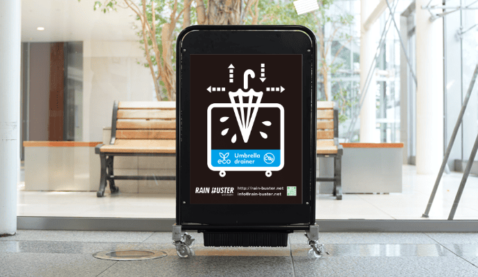 レインバスターなら、傘についたしずくをサッとオフ。ワンタッチのシンプル操作で、手間なくスムーズな動線を実現。